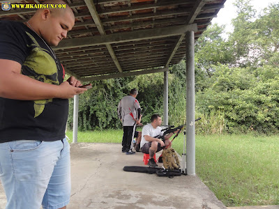 Marcelo, Gustavo e Lemos ajustando a carabina de Gustavo.